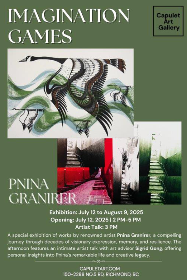 Capulet Art Gallery is proud to present a two-part exhibition by well-known Canadian artist Pnina Granirer, showcasing two distinct yet interconnected bodies of work—Imagination Games and Wings of Memory.